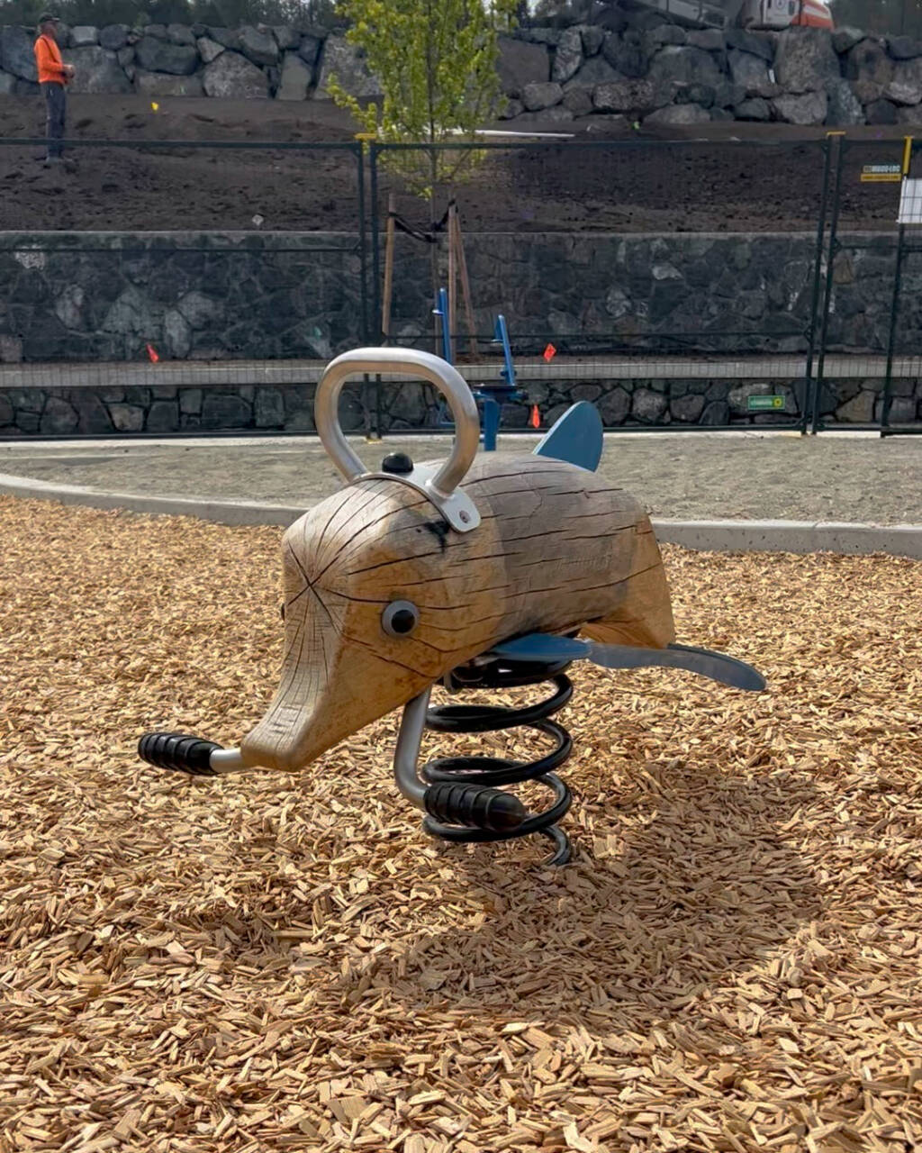 Due to the uniqueness of each piece of Robinia wood, the Dolphin Springers that were delivered ended up being stained from the tannins in the wood. After an inspection from the Parkworks team, they determined that the springers needed to be replaced to ensure a seamless and cohesive look throughout the entire play space. KOMPAN sent the required replacements which were installed quickly and look fantastic in the playground.
