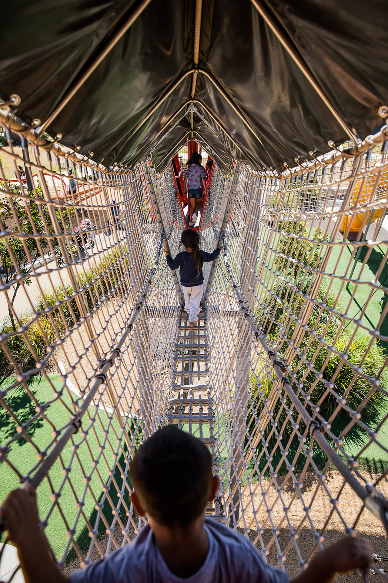 Suspension bridges should not be omitted from any playground! It’s not just about the excitement of the height, but it’s also about getting there; daring to step on the ropes while seeing the ground through the holes!