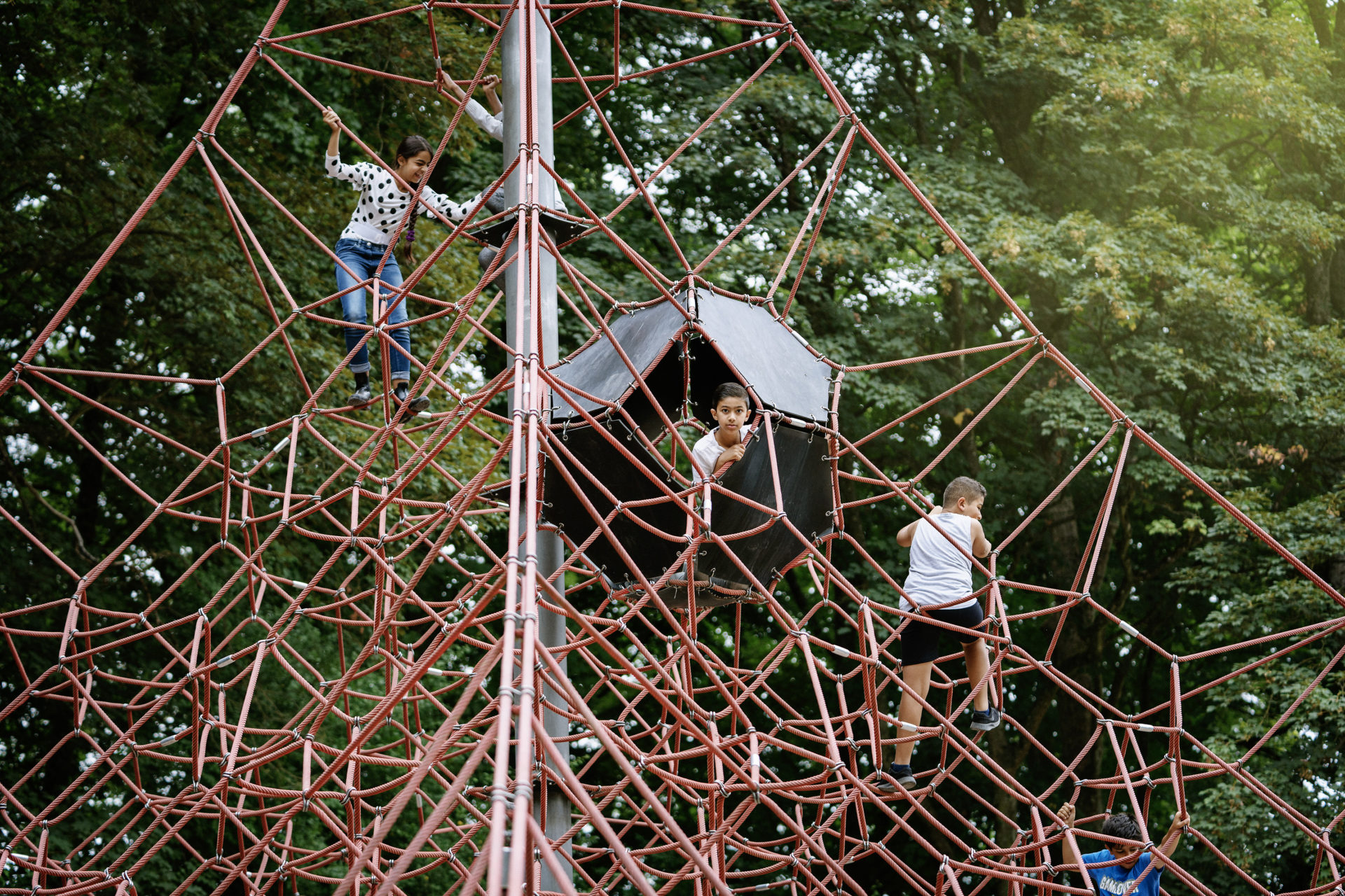 These structures unfold a three-dimensional rope environment, in which a child can move freely in all directions. Furthermore, its compact design is an advantage under limited site conditions.